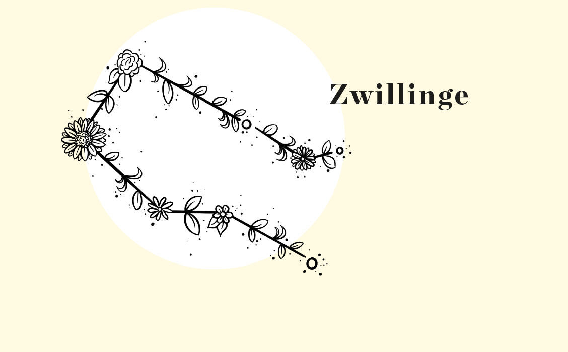 Das Sternzeichen Zwilling ist geprägt von Vielseitigkeit, Intellekt, Kommunikationsfähigkeit und Geselligkeit. Oft werden Zwillinge als offene Wesen wahrgenommen, die die Gesellschaft anderer Menschen genießen und eine natürliche Fähigkeit haben, sich in verschiedenen sozialen Situationen wohlzufühlen. Zwillinge sind neugierige Menschen, die das Leben mit viel Leichtigkeit und einer beeindruckenden Spontanität angehen. Ihre Unbeständigkeit und ihr flüchtiges Temperament können ihnen aber auch gerne mal im Weg stehen.