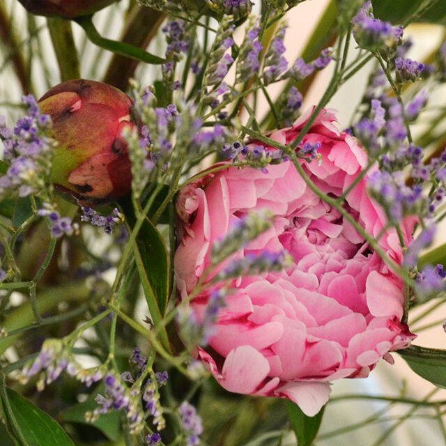 Prächtige, gemischte Pfingstrosen, z.T.“Sarah Bernhardt“, teilen sich diese Woche Ihre Tischvase mit zartem Limonium. Die kurzstielige Kombination erhalten Sie bei uns bis zum 6.6.2016. Bestellen oder ändern Sie Ihr Abo bis Do, 2.6.2016, wählen Sie als Liefertermin spätestens Montag, den 6.6.2016 und freuen Sie sich auf Ihre Bloomen der Woche!