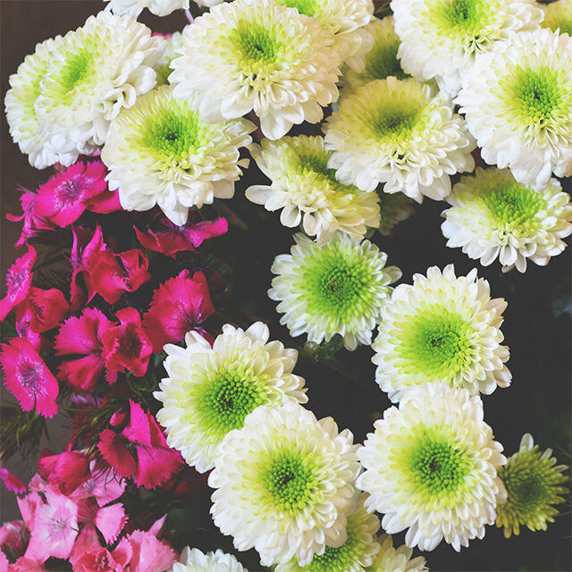 Weiße Knopfsantini und Bartnelken schmücken diese Woche Ihre Tischvase. Die kurzstielige Kombination erhalten Sie bei uns bis zum 20.6.2016. Bestellen oder ändern Sie Ihr Abo bis Do, 16.06.2016, wählen Sie als Liefertermin spätestens den 20.06.2016 und freuen Sie sich auf Ihre Bloomen der Woche!