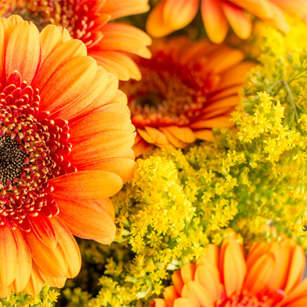 Die Germini und Goldrute sind sehr pflegeleicht. Schneiden Sie die Blumen bei ihrer Ankunft gerade an und stellen Sie sie dann in eine Vase mit viel frischem Wasser. Achten Sie jedoch darauf, dass die Blätter der Goldrute nicht ins Wasser ragen, da dies das Wasser trüben und die Blätter faulig werden könnten. Um auch lange Freude an den Blumen zu haben, sollten Sie das Wasser alle zwei Tage wechseln und die Blumen noch einmal frisch anschneiden.