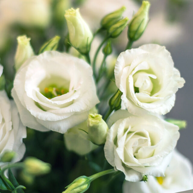 Weiße Dekochrysanthemen und exotischer Papyrus bringen diese Woche klassische Schönheit in Ihre Bodenvase. Diese langstielige Kombination erhalten Sie bei uns bis zum 14.03.2016.