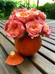 In unserem Beispiel haben wir uns für einen Strauß Free Spirit Rosen entschieden. Bei der Wahl der Schnittblumen ist Ihrer Phantasie aber natürlich keine Grenze gesetzt. Auch unsere Blumen der Woche aus unserem BLOOMY DAYS Blumenabo strahlen wunderschön in der Kürbis-Vase.