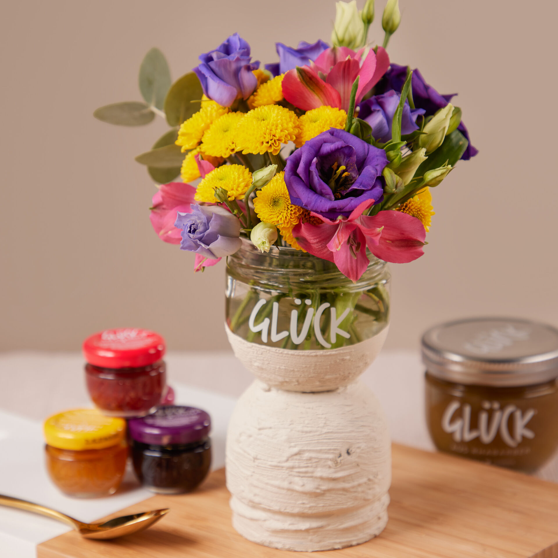 Wir vom Bloomy Team, würden uns auf jeden Fall zu den #breakfastlovern zählen. Dabei dürfen Marmelade und Honig auf keinen Fall fehlen. Besonders seit wir mit unseren Freunden von GLÜCK zusammenarbeiten, ist unser Marmeladen-Konsum abrupt in die Höhe geschossen. Viel GLÜCK bedeutet aber auch viele leere GLÜCK Gläser. Um diesen ein zweites Leben zu schenken, haben wir uns ein kleines DIY überlegt, wie Du aus Deinen leeren GLÜCK Gläsern eine coole Vase im Terracotta Look basteln kannst.