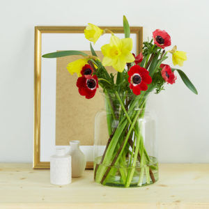 Für dieses Bouquet empfehlen wir eine Tischvase mit weiter Öffnung, damit die einzelnen Blüten gut zur Geltung kommen.