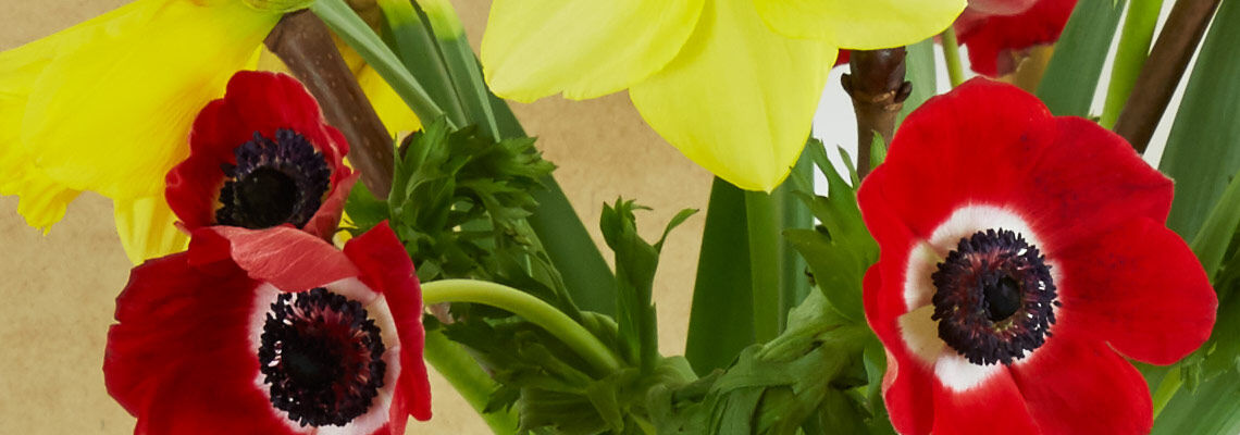 In kräftigem Rot ist die Anemone ein kontrastreiches Pendant zur Narzisse. Aus Südeuropa und Asien stammend, ist die Anemone eine Pflanzenart der Gattung Windröschen, von der es mehr als 120 Arten gibt. Die Anemone ist extrem pflegeleicht. Die Blume sagt nichts Geringeres als „Ich möchte gerne bei Dir sein“ und steht deshalb für Ehrlichkeit und Sorgfalt. Dieser weiche Charakter spiegelt sich in ihrer Zartheit und ihren federleichten Blüten wider. Daher hat sie wohl ihren Namen, denn das griechische Wort „Anemos“ bedeutet „Wind”.