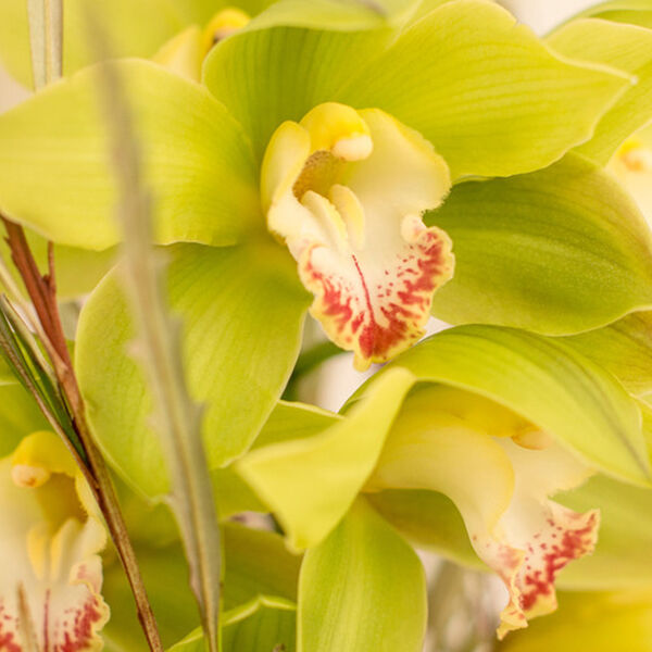 Ein schlanker Stiel und daran eine Blütenpracht, die ihresgleichen sucht, das ist unsere BLOOME DER WOCHE – die Cymbidie. Lassen Sie sich verzaubern von der außergewöhnlichen Cymbidie in Kombination mit Grevilla (Silbereiche).