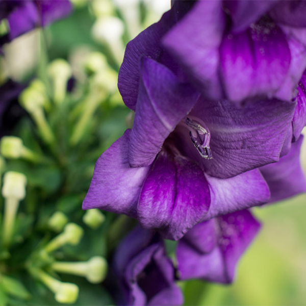 Gladiolen sind eine beeindruckende Erscheinung in der Vase. Die Schwertliliengewächse strahlen Stolz und Kraft aus und ihre Blüten sind eine wahrhaft majestätische Erscheinung. Die zarte Verspieltheit der Bouvardie bildet einen ungewöhnlichen Kontrast zu den Gladiolen, der in Ihrer Bodenvase zur Geltung kommt.