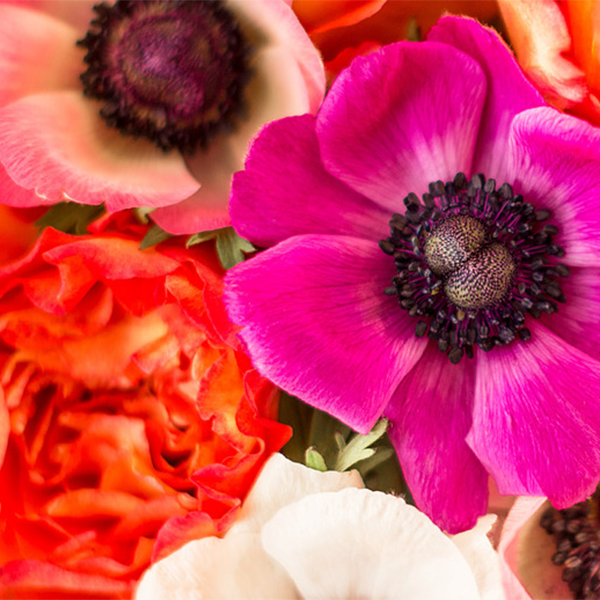 Haben Sie keine Berührungsängste bei den Rosen – wir haben die Dornen der Rosen bereits sorgfältig entfernt. Schneiden Sie die Rosen mit einem scharfen Messer schräg an, um ihnen die Wasseraufnahme zu erleichtern und somit ihre Haltbarkeit zu verlängern. Da die Anemonen zu den Frühblühern gehören, sollten sie keiner zu großen Hitze ausgesetzt werden. Als Regel können Sie sich merken, je früher im Jahr, desto kälter sollte das Wasser in der Vase und die Raumtemperatur für die Blumen optimalerweise sein. Schneiden Sie die Anemonen bei Ihrer Ankunft nur an. Sollten die Anemonen nach ein paar Tagen die Köpfe hängen lassen, schneiden Sie sie einfach noch einmal an.