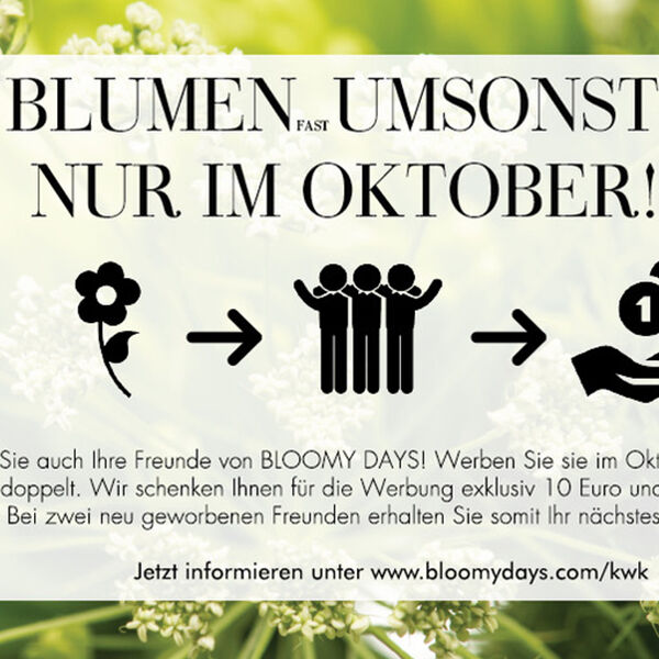 Sind Sie auch so begeistert von unseren BLOOMEN DER WOCHE? Teilen Sie Ihre Begeisterung mit Ihren Freunden, Nachbarn oder Kollegen und erzählen sie Ihnen von BLOOMY DAYS.