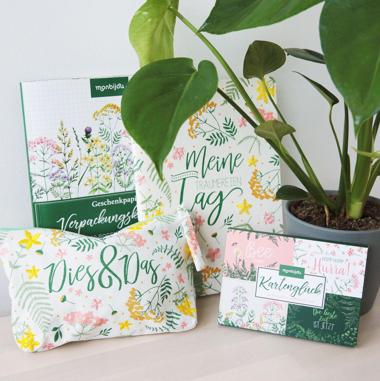Zusammen mit Monbijou verlosen wir einmal das 4-teilige Papeterie-Set von Monbijou und unsere Bloomy Days Pflanze „Mona“. Der Gewinn kann nicht in bar ausgezahlt werden und ist vom Umtausch ausgeschlossen. Der Gewinn kann nicht auf Dritte übertragen werden und darf nicht weiter veräußert werden. Sollte der Betreiber aus nicht vertretbaren Gründen den Gewinn nicht zur Verfügung stellen können, so behält sich er vor, einen gleichwertigen Ersatz zu liefern.