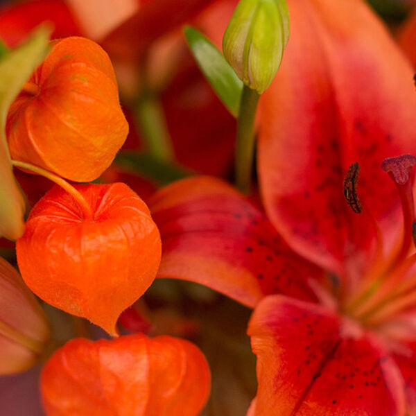 Sehen wunderschön in Ihrer Bodenvase aus: Lilien und Zierphysalis