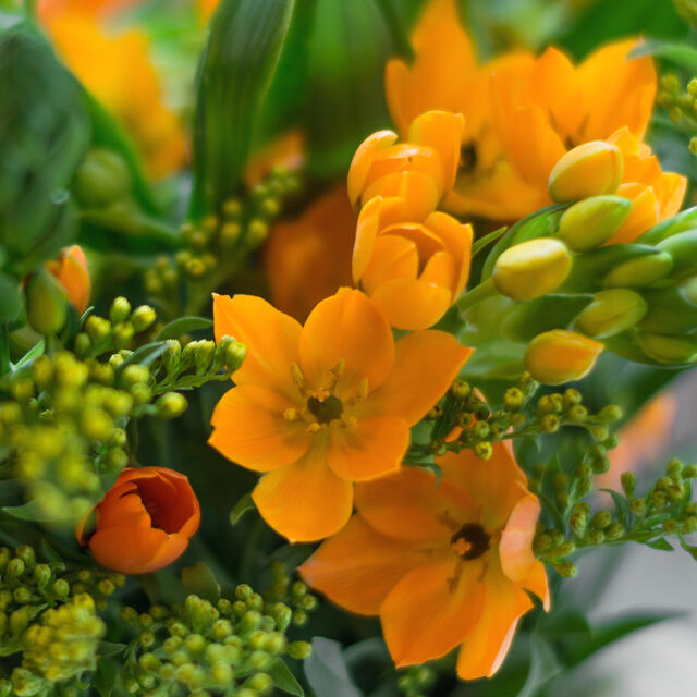 Mit dieser zart duftenden Kombination aus Milchstern, Goldrute und Inkalilien zieht Ihre Tischvase diese Woche wieder alle Blicke auf sich! Diese kurzstielige Kombination erhalten Sie bei uns bis zum 06.04.2016.