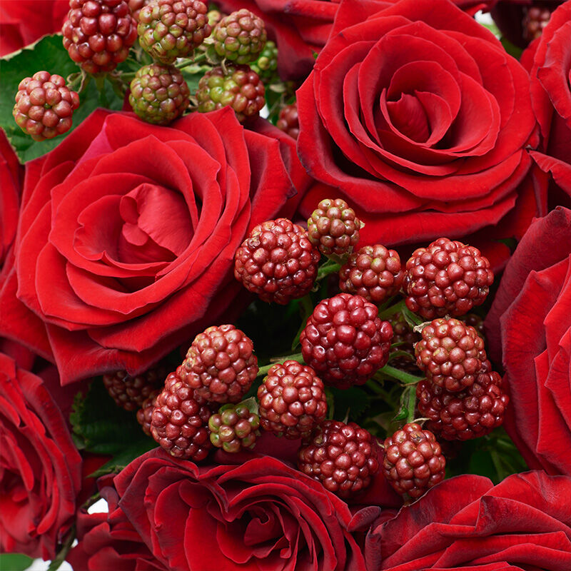 Diese Woche verzaubert unser kurzstieliges Bouquet mit einer besonders romantischen Kombination bestehend aus Rosen und Brombeeren. Mit seinen edlen Rottönen verleiht „Red Berry“ dabei jedem Raum einen eleganten Akzent und kann gleichzeitig mit fast jedem Einrichtungsstil kombiniert werden.