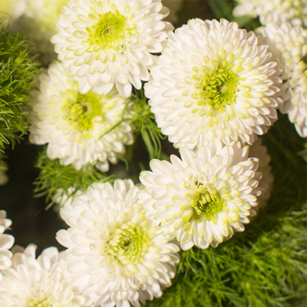 Santini sind kleine knopfartige Chrysanthemen, die wunderschön in einem Blumenbouquet aussehen. Erfahren Sie hier mehr Informationen!