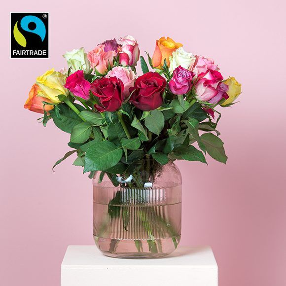 Mit unseren wunderschönen Arrangements verschenkst Du nicht nur ein strahlendes Lächeln, sondern tust auch den Mitarbeitern der Rosenfarm etwas Gutes, da Fairtrade für bessere Arbeits- und Lebensbedingungen der Beschäftigten auf Rosenfarmen in Ostafrika steht. Fairtrade kennzeichnet Waren, die aus fairem Handel stammen und bei deren Herstellung strenge soziale, ökologische und ökonomische Kriterien eingehalten wurden. Das Siegel steht für fair angebaute und gehandelte Produkte, bei dem alle Produkte zu 100 Prozent unter Fairtrade-Bedingungen gehandelt sind und physisch rückverfolgbar sind, wie zum Beispiel bei Kaffee, Bananen oder unseren Blumen. Die Blumen wurden von Fairtrade-Produzenten angebaut sowie nach Fairtrade-Standards zertifiziert und gehandelt. Du möchtest noch mehr über dieses Thema wissen? Dann findest Du hier mehr Infos: www.fairtrade-deutschland.de/siegel.
