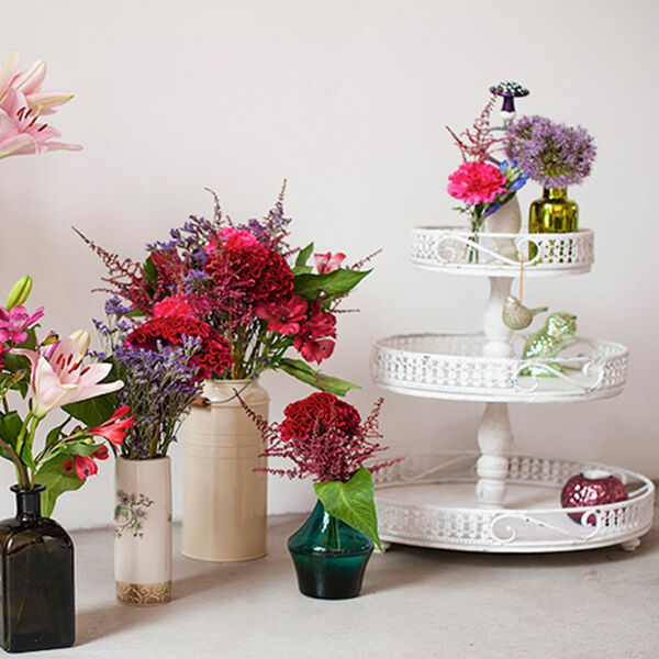 Strauchartige Bouquets kommen besonders schön Trompeten- oder Zylindervasen zur Geltung. Insbesondere schwere Blüten können Sie hiermit mehr Halt geben und verhindern, dass die schönen Köpfe abbrechen.