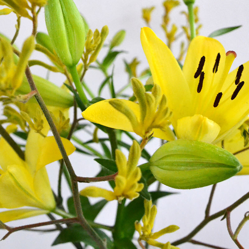 Wir finden, die beste Möglichkeit, den tristen Herbst zu vertreiben, ist mit frischen, bunten Blumen auf dem Tisch – zum Beispiel mit „Yellow Kangaroo“. Diese Woche bringen wir Ihnen deshalb die Sonne Australiens nach Hause oder ins Büro! Die knallig-gelbe Farbe der Lilien und die außergewöhnlichen Blüten der Kängurufüßchen macht sofort gute Laune und lässt uns vom Urlaub am anderen Ende der Welt träumen.